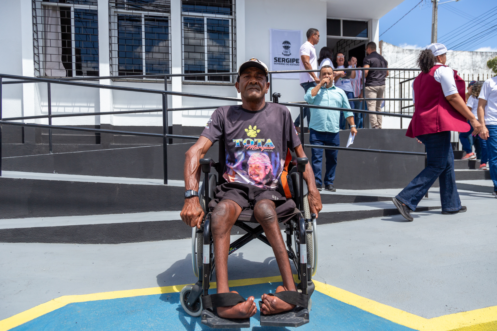 Aguardando ansiosamente do lado de fora, Jó Francisco Santana é cadeirante e fez questão de comparecer nesta sexta-feira à entrega da reforma da Delegacia de Atendimento à Mulher e Outros Grupos Vulneráveis (DAGV) de Tobias Barreto. “A melhor coisa para Tobias Barreto foi esta delegacia. Estávamos precisando”, disse o morador.