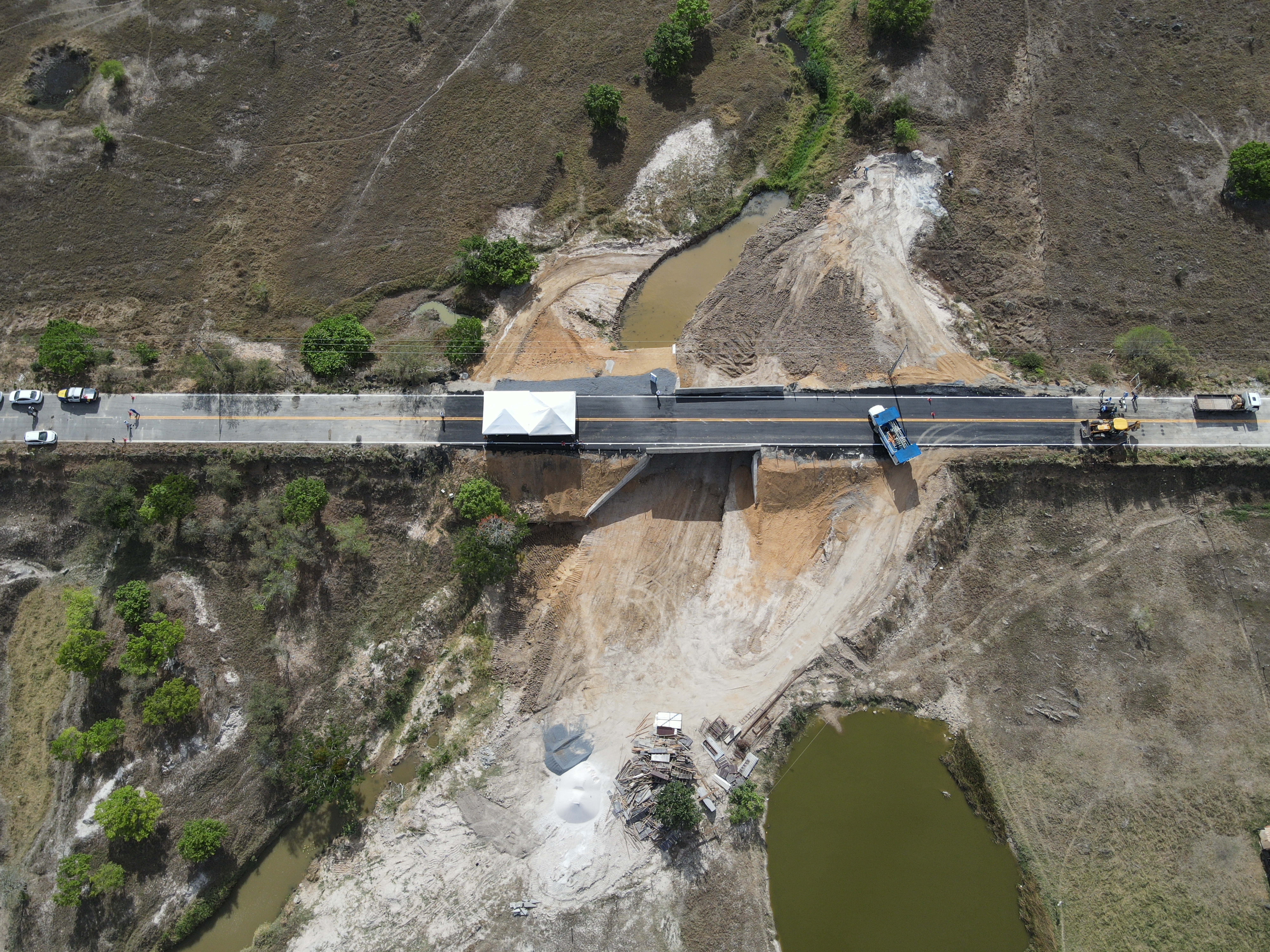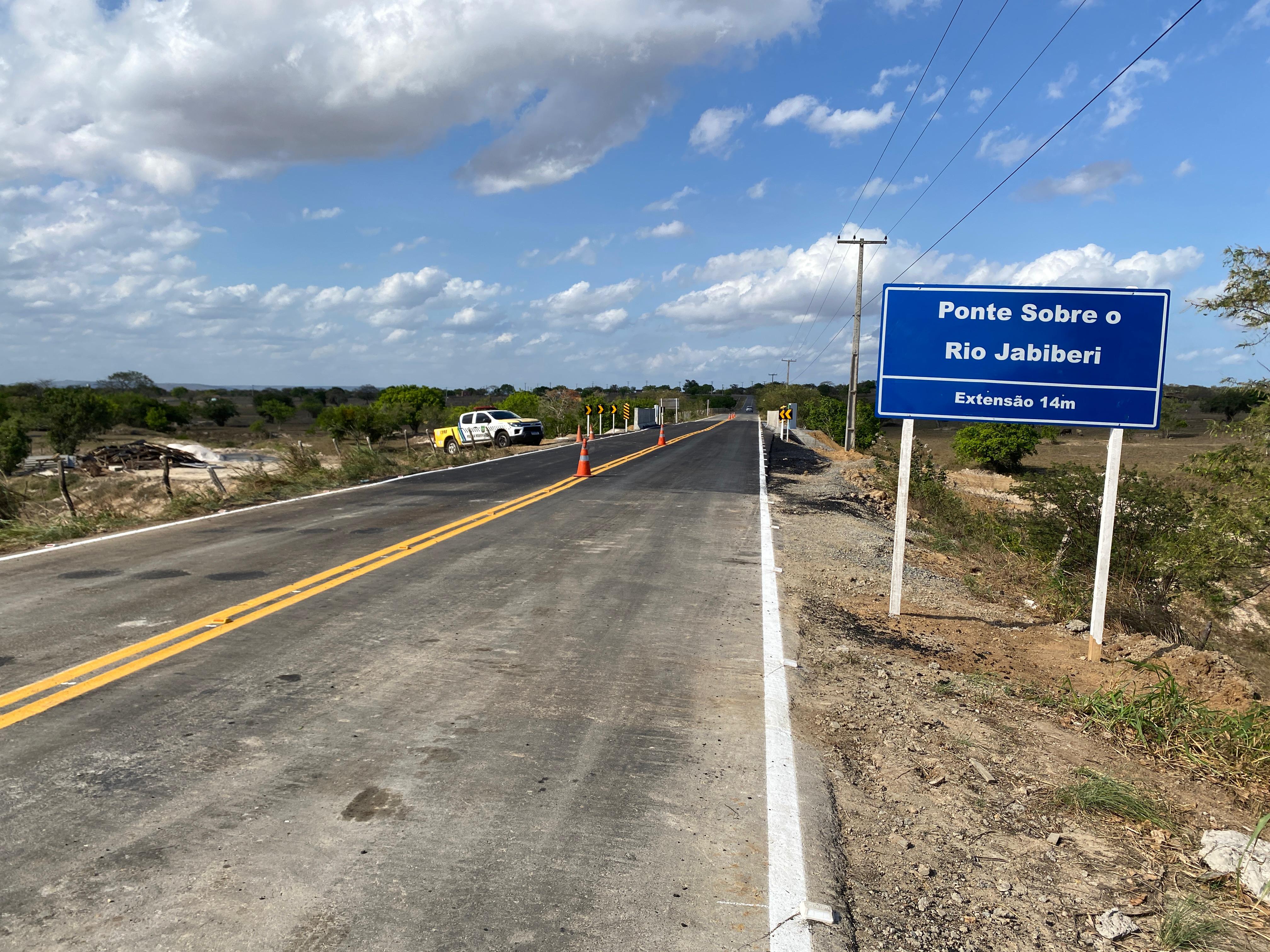 O trecho, que até ano passado era interligado apenas por uma manilha (dispositivo de drenagem), ficou danificado após as fortes chuvas que atingiram o estado em novembro de 2022. Via de acesso para povoados nos dois municípios, a ponte de 14 metros de extensão sobre o Rio Jabiberi atende às demandas mais urgentes da região e foi fruto de um investimento de R$ 2.092.777,26.